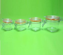 Pots en verre avec couvercles vissables , clipsables ou avec armatures métallique.
